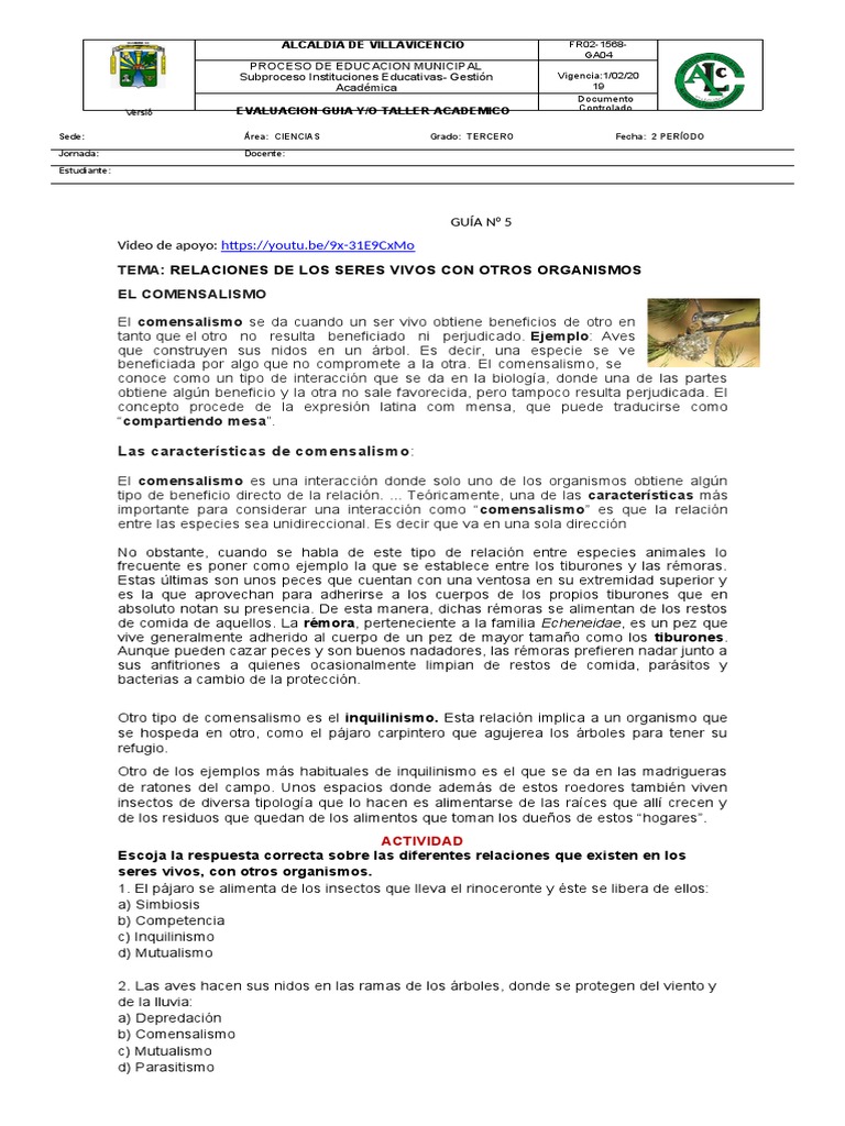 TEMA: RELACIONES DE LOS SERES VIVOS CON OTROS ORGANISMOS