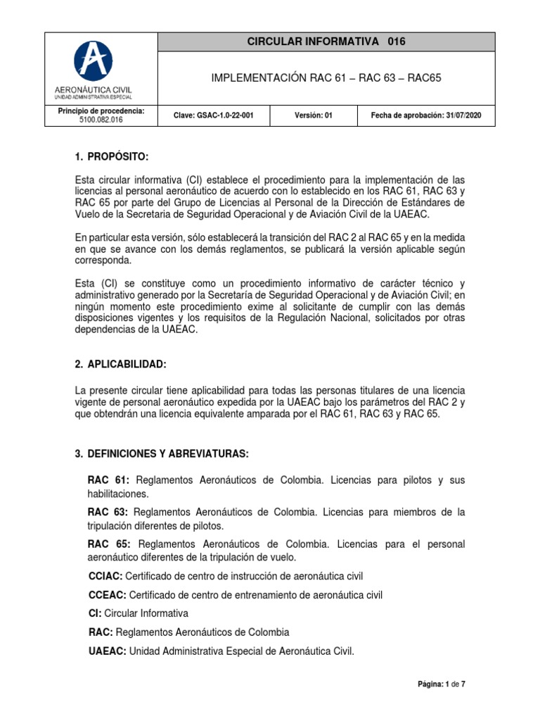 El RAC 65 fue adoptado mediante resolución 03761 de 2016, publicada en el diario oficial