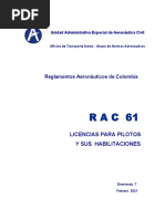 RAC 61: Reglamentos Aeronáuticos de Colombia. Licencias para pilotos y sus