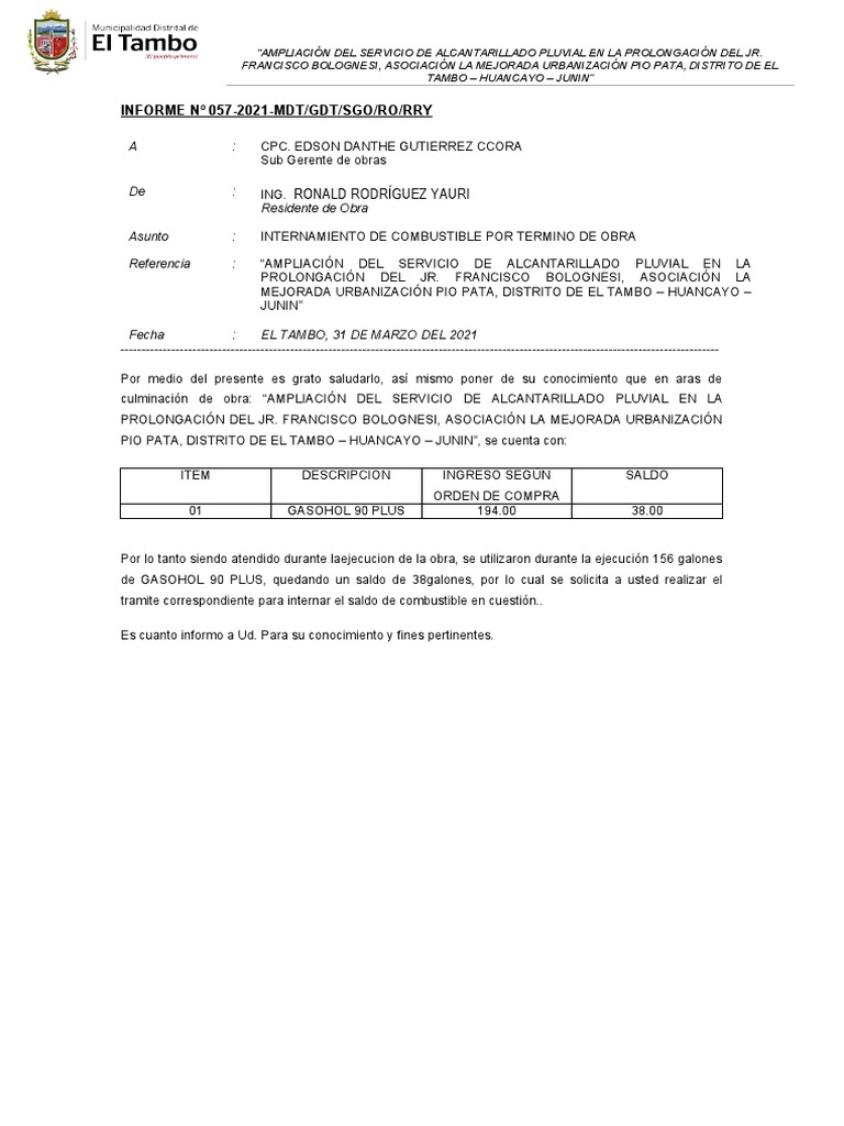 INFORME Nº 057-2021-MDT/GDT/SGO/RO/RRY