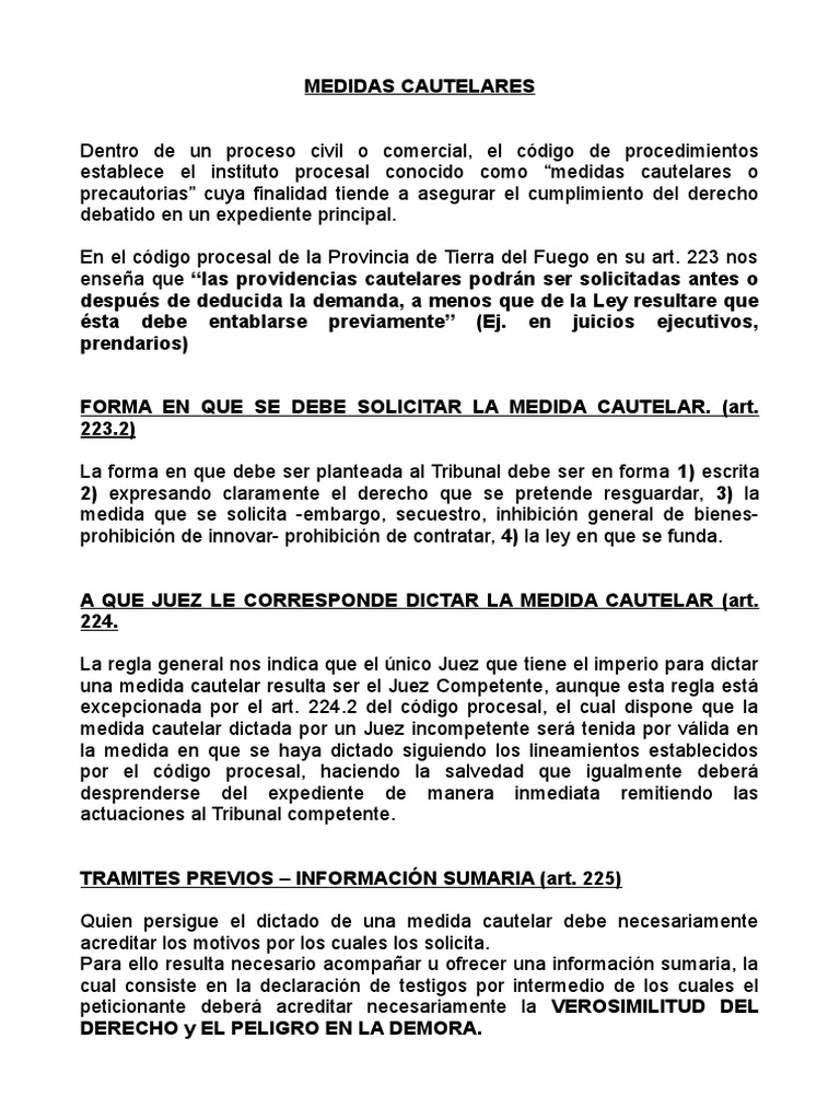 MEDIDAS CAUTELARES GENÉRICAS (art. 260)