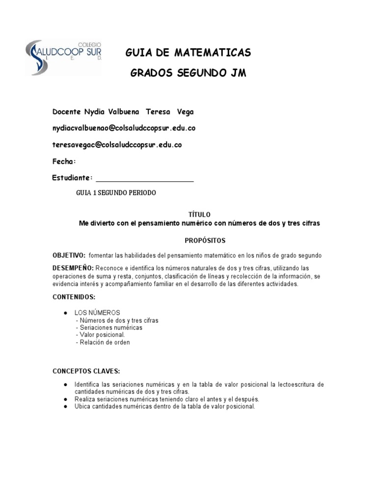 OBJETIVO: fomentar las habilidades del pensamiento matemático en los niños de grado segundo