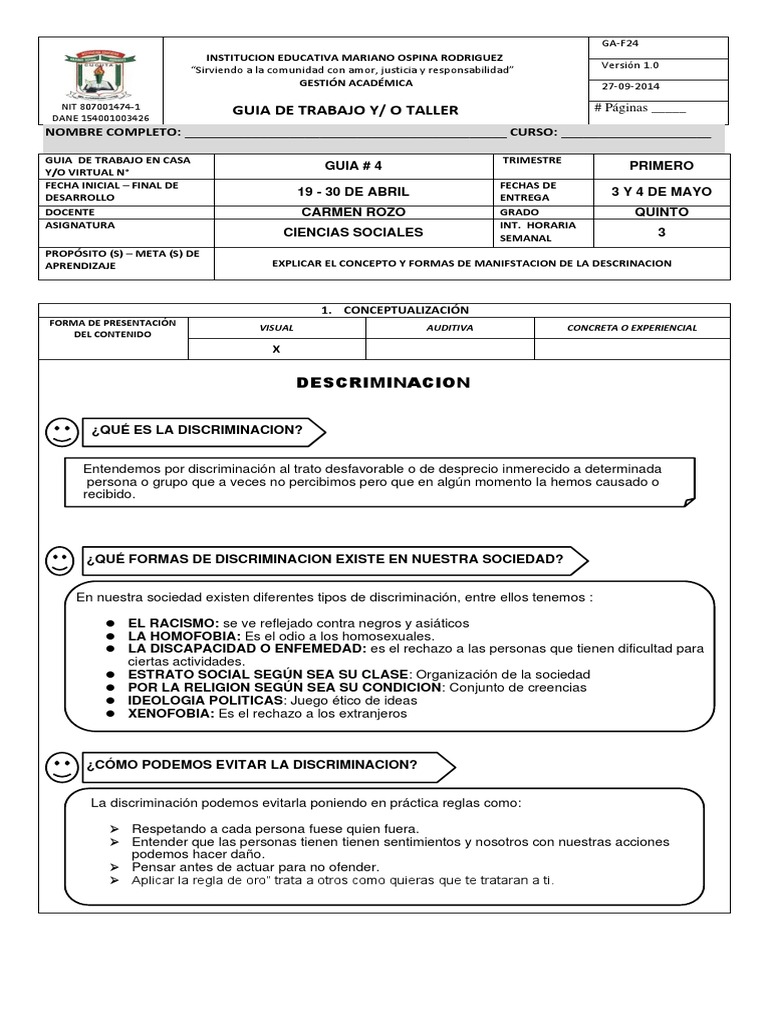 ¿QUÉ FORMAS DE DISCRIMINACION EXISTE EN NUESTRA SOCIEDAD?