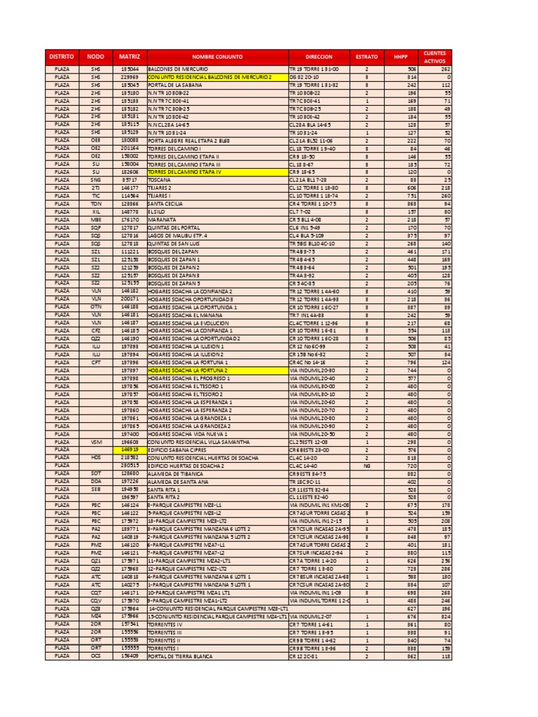 DISTRITO NODO MATRIZ NOMBRE CONJUNTO DIRECCION ESTRATO HHPP
