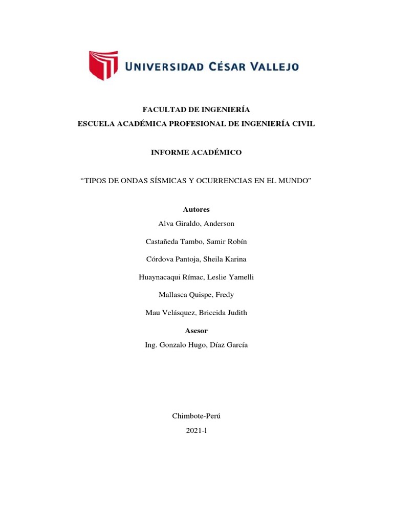 “TIPOS DE ONDAS SÍSMICAS Y OCURRENCIAS EN EL MUNDO”