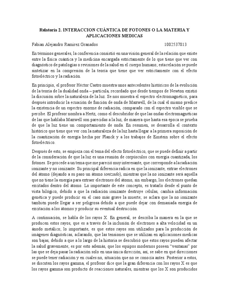 fotones. Se procede a un tema que me pareció muy interesante, que corresponde a la radiación
