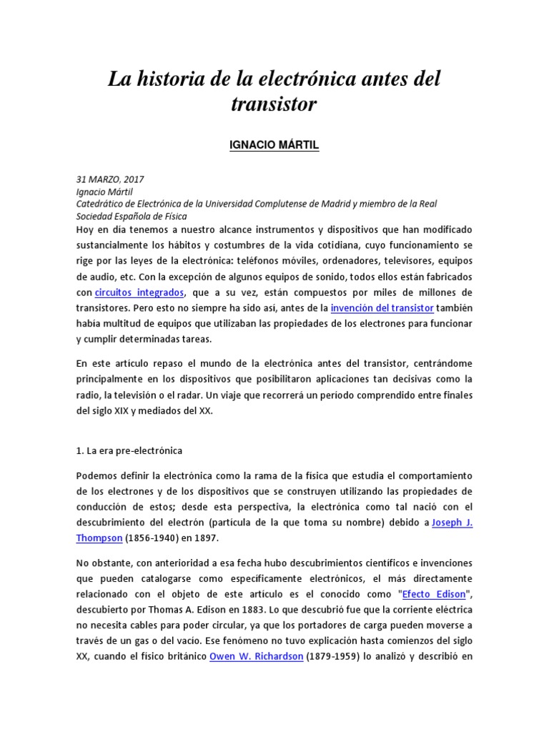 descubierto por Thomas A. Edison en 1883. Lo que descubrió fue que la corriente eléctrica