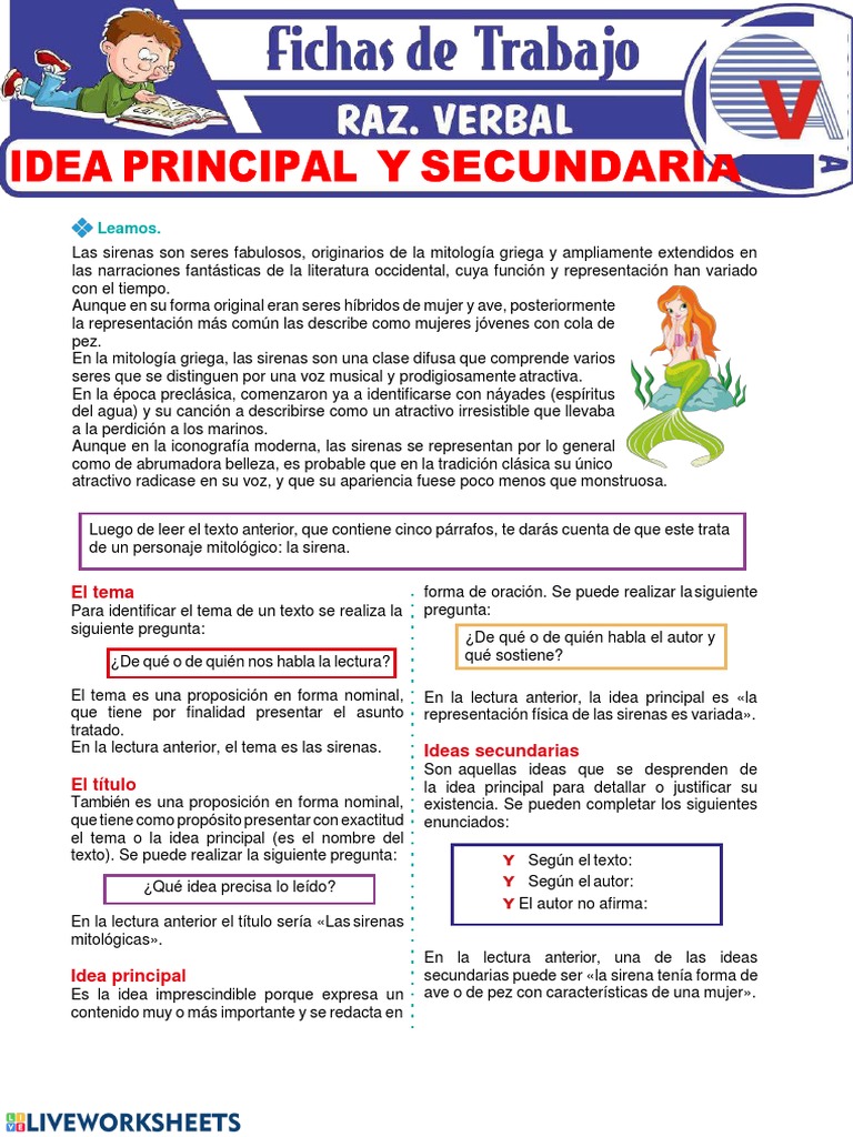 En la lectura anterior, el tema es las sirenas. Ideas secundarias
