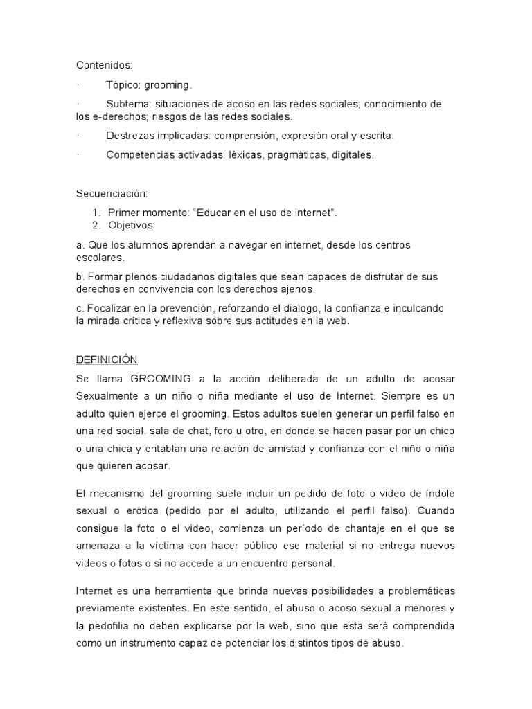 adulto quien ejerce el grooming. Estos adultos suelen generar un perfil falso en