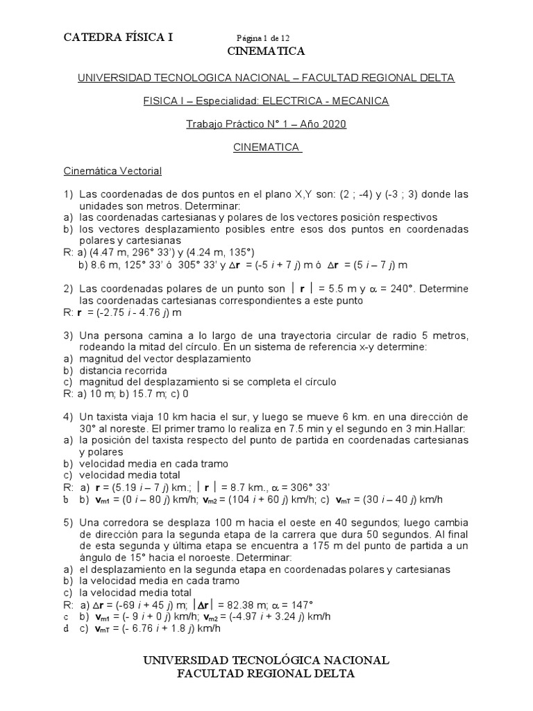 FISICA I – Especialidad: ELECTRICA - MECANICA