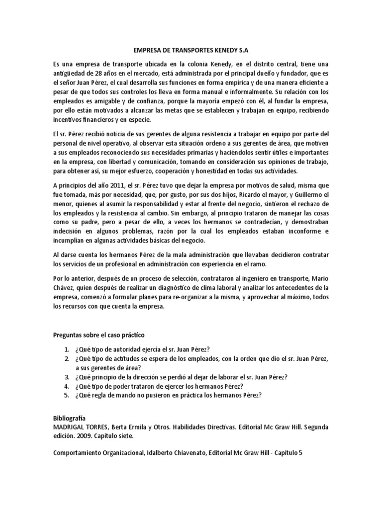 1. ¿Qué tipo de autoridad ejercía el sr. Juan Pérez?