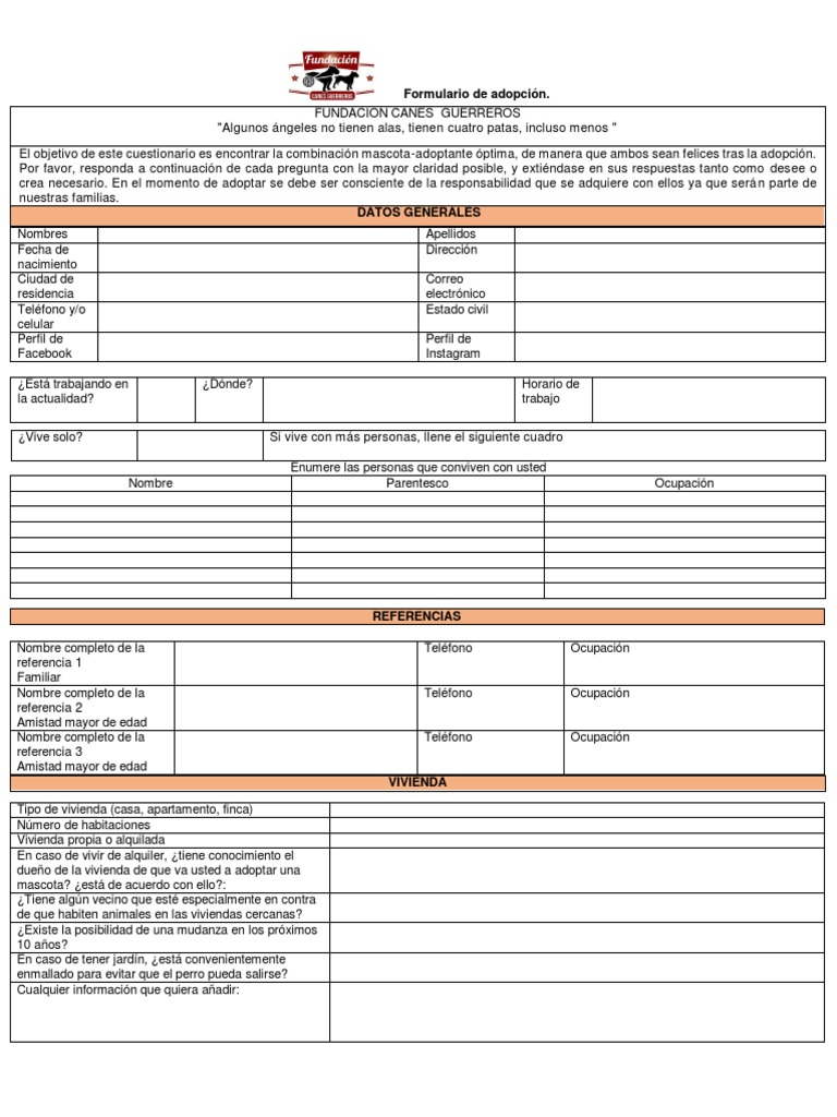 El objetivo de este cuestionario es encontrar la combinación mascota-adoptante óptima, de manera que ambos sean felices tras la adopción.