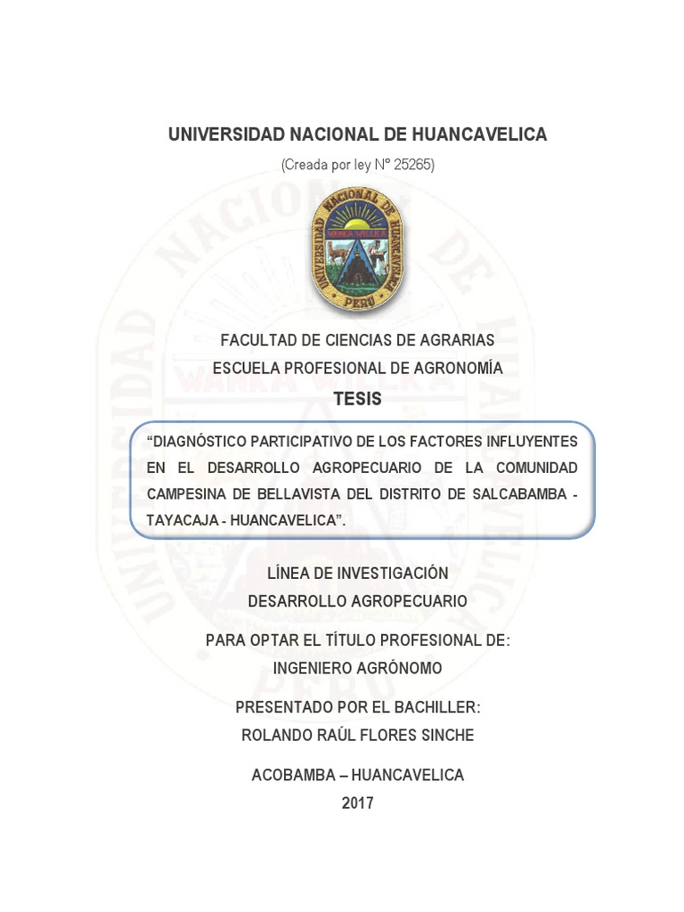 A la Universidad Nacional de Huancavelica, Facultad de Ciencias Agrarias, por mi