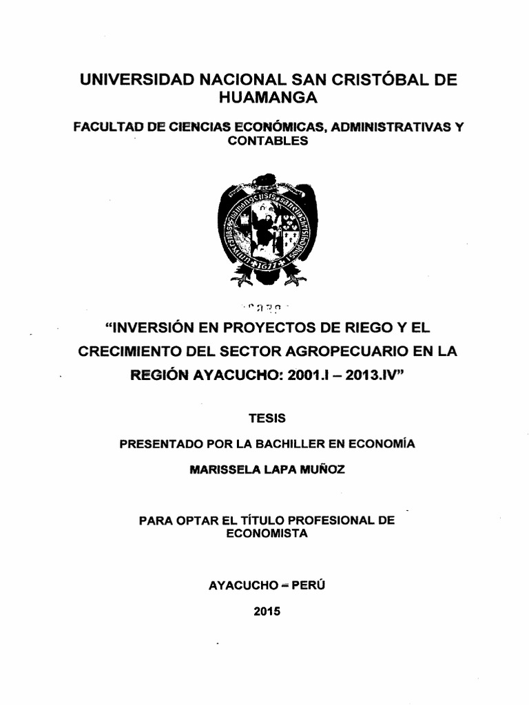 13 Ver pág. 5, de la Síntesis Económica de Ayacucho- Enero 2012, Departamentos de Estudios