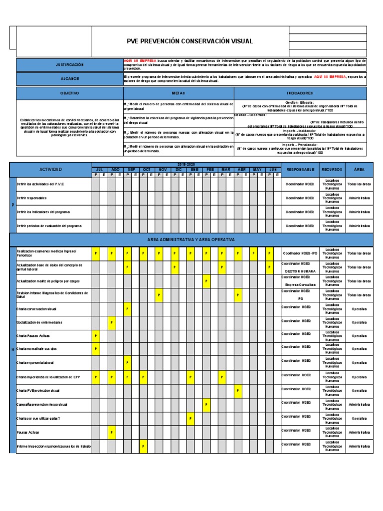 El presente programa de intervencion brinda cubrimiento a los trabajadores que laboran en el area administrativa y operativa AQUÍ SU EMPRESA, expuestos a