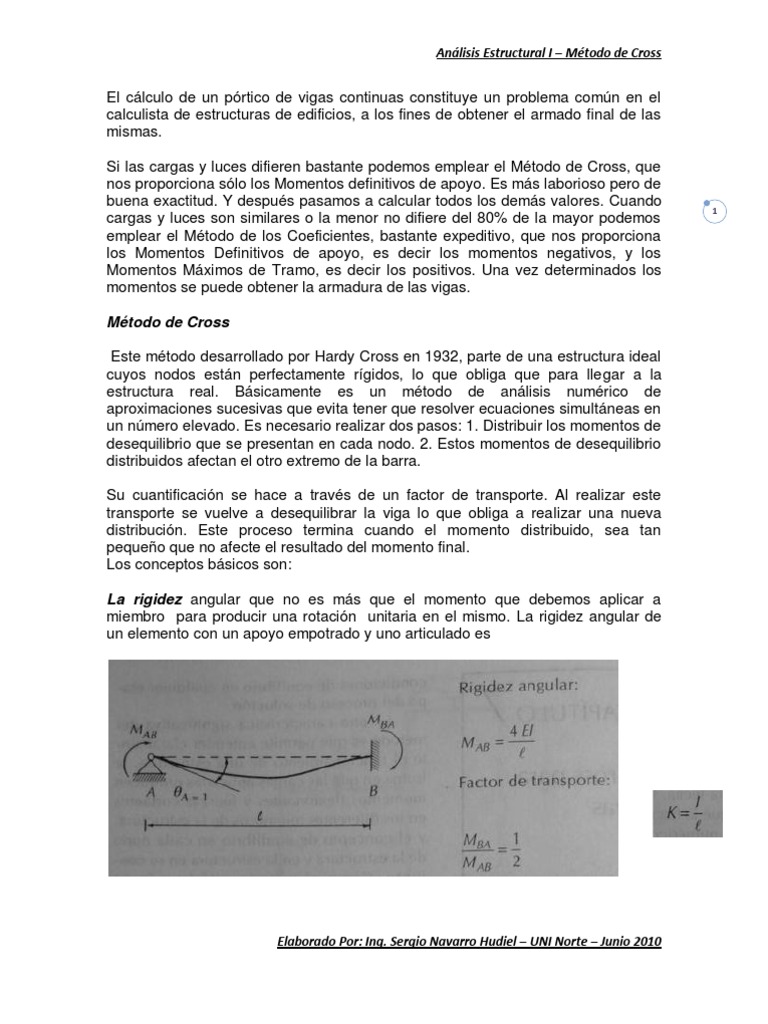 Este método desarrollado por Hardy Cross en 1932, parte de una estructura ideal