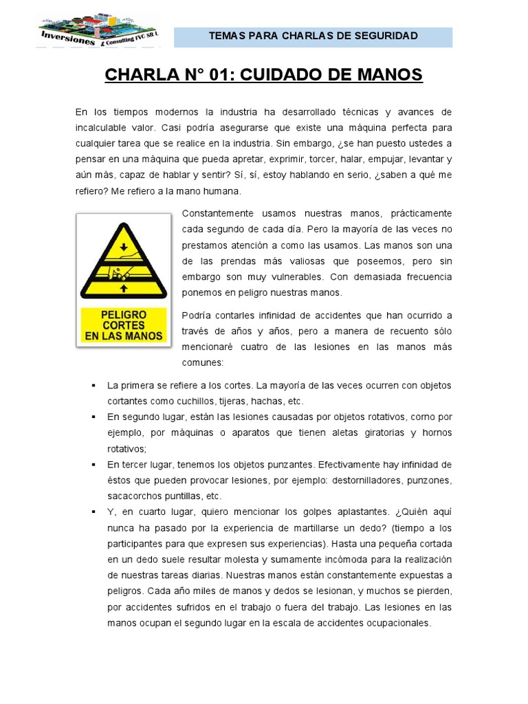 procedimientos seguros cada vez que utilicen las manos, manténganlas fuera de los