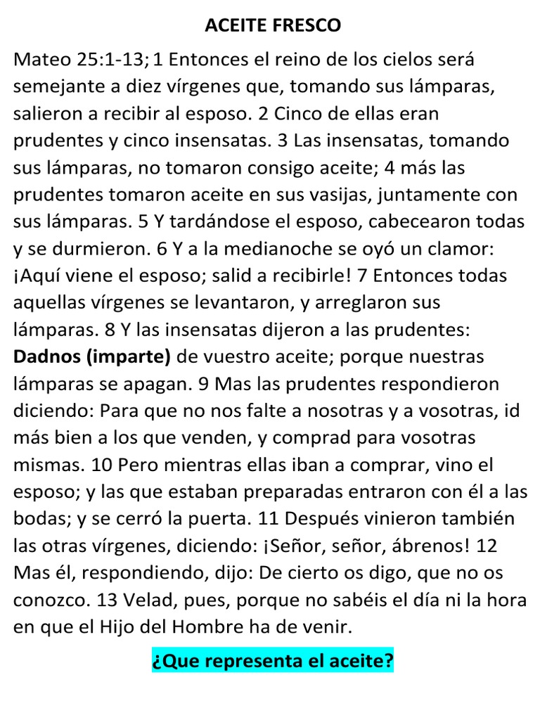 . Las 5 vírgenes pidieron aceite porque no tenían una