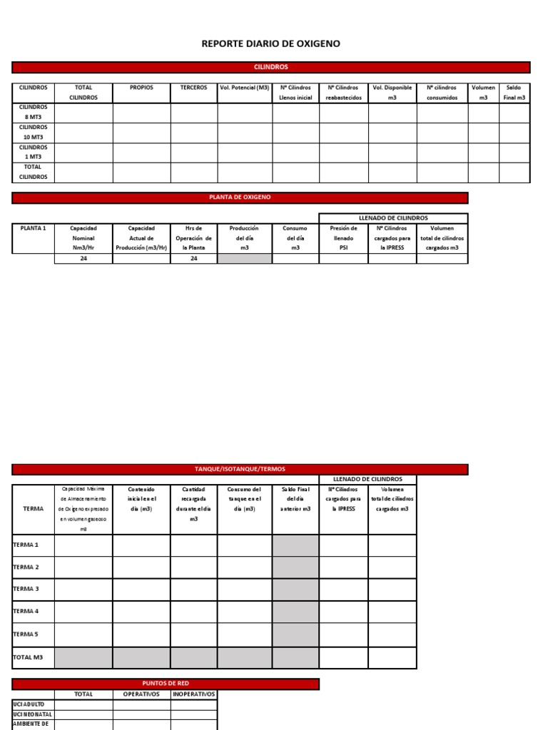 TERMA de Oxígeno expresado dia (m3) durante el día día (m3) anterior m3 la IPRESS cargados m3