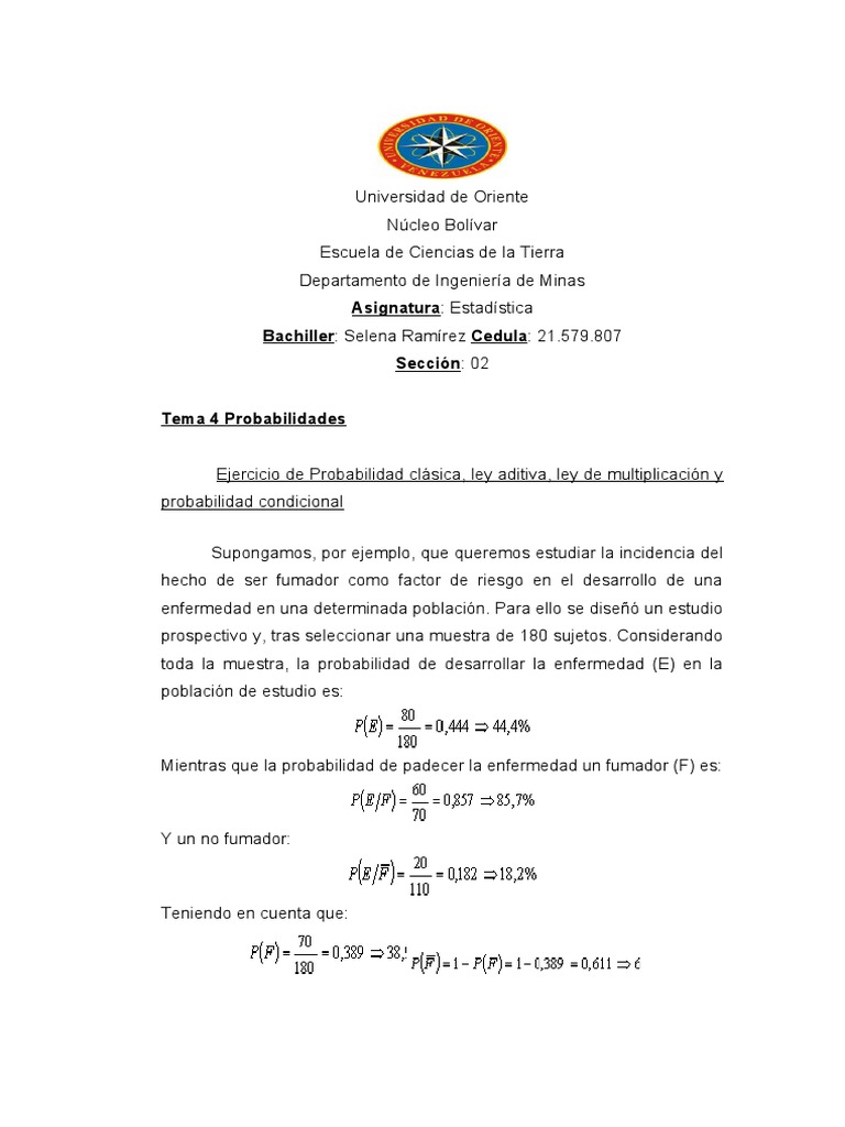 cada uno de ellos, el llamado Teorema de las Probabilidades