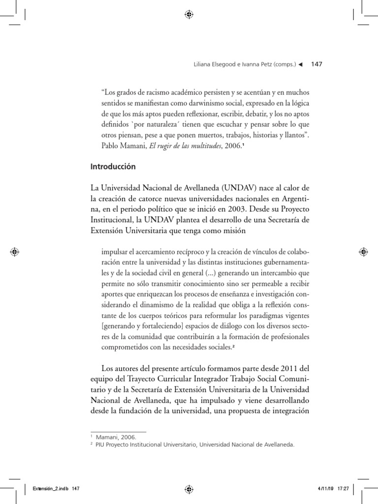 sin perspectivas y sin articulación con los saberes territoriales. En esta misma obra,
