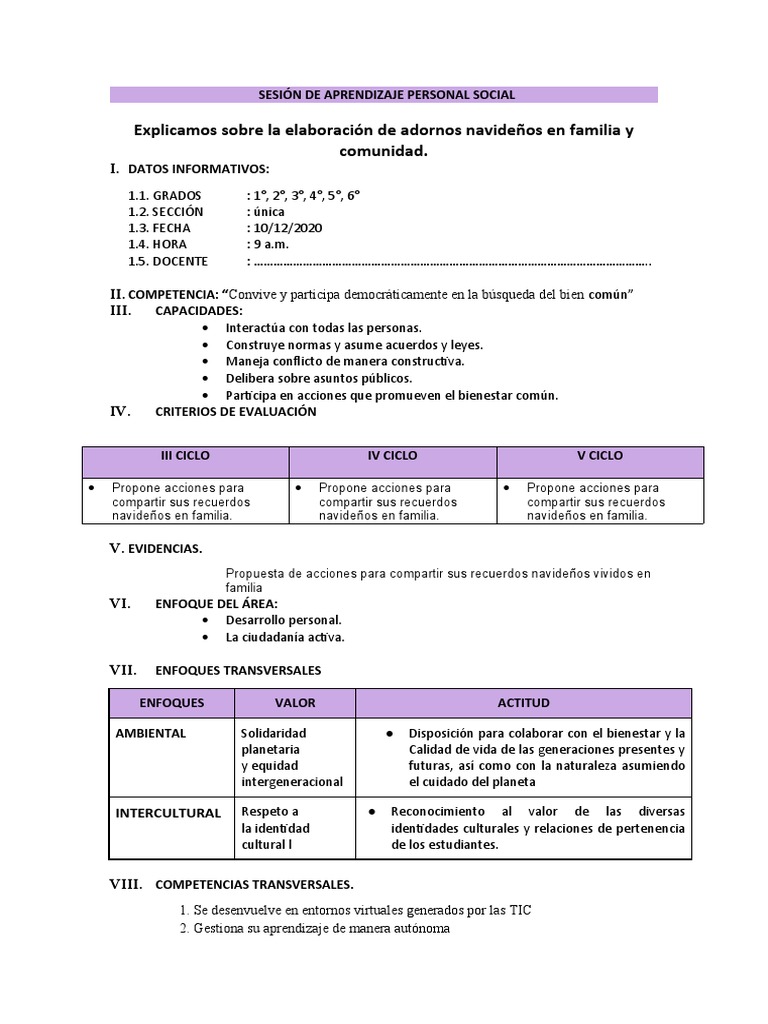 SESIÓN DE APRENDIZAJE PERSONAL SOCIAL