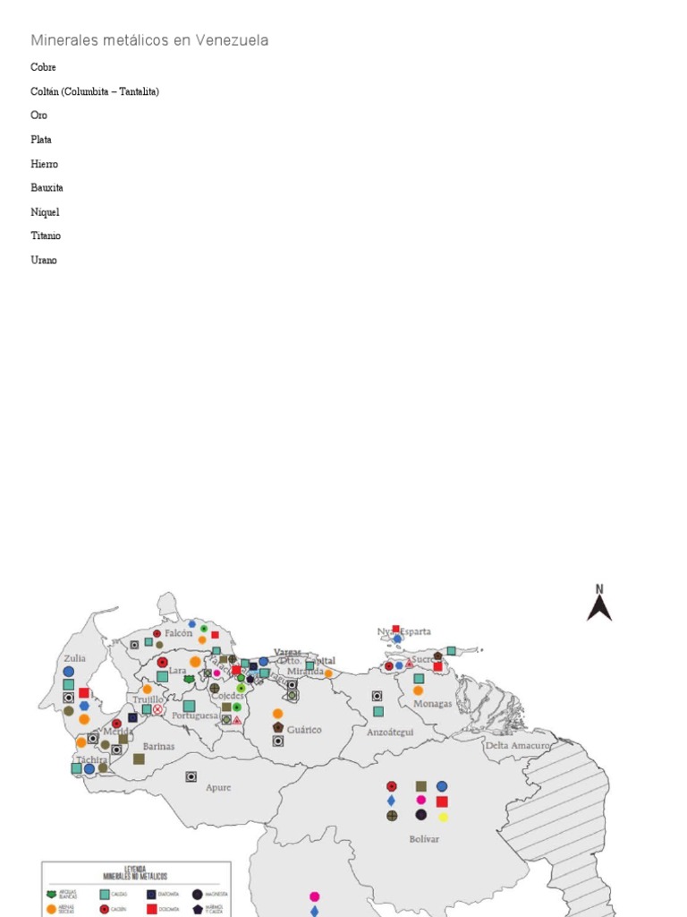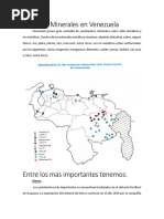 Venezuela posee gran variedad de yacimientos minerales, entre ellos metálicos y no metálicos. Dentro de los minerales