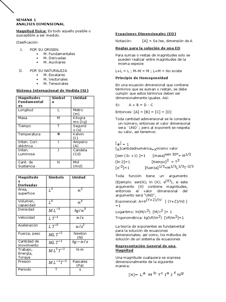Análisis Dimensional y Magnitudes Físicas