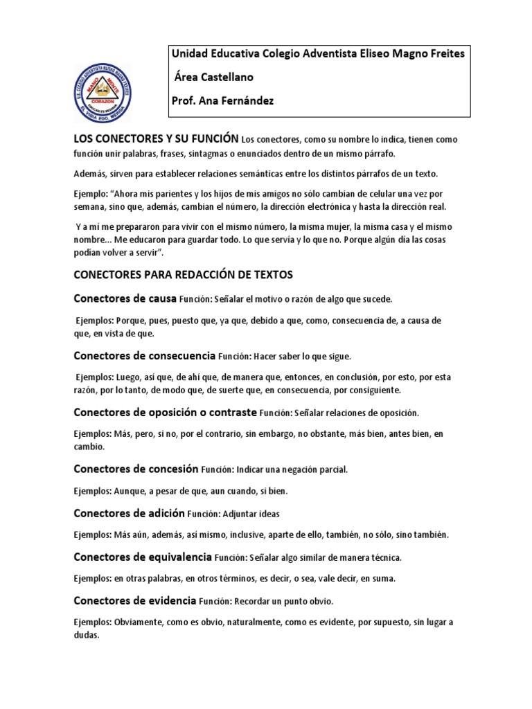 LOS CONECTORES Y SU FUNCIÓN Los conectores, como su nombre lo indica, tienen como