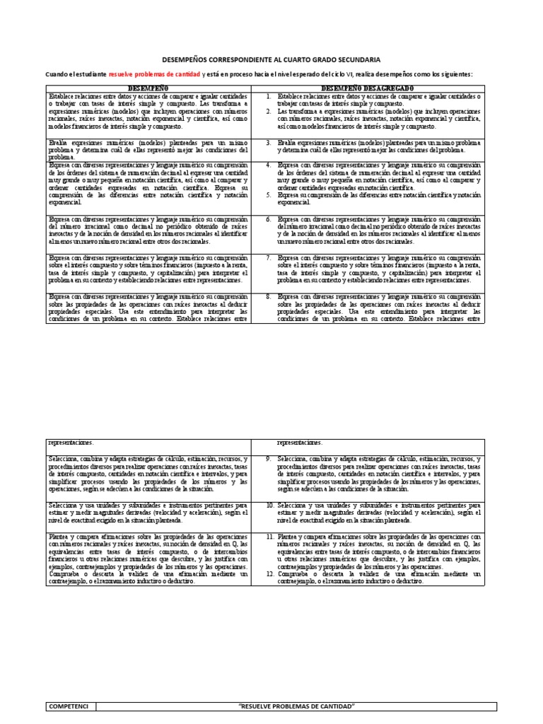 Cuando el estudiante resuelve problemas de cantidad y está en proceso hacia el nivel esperado del ciclo VI, realiza desempeños como los siguientes: