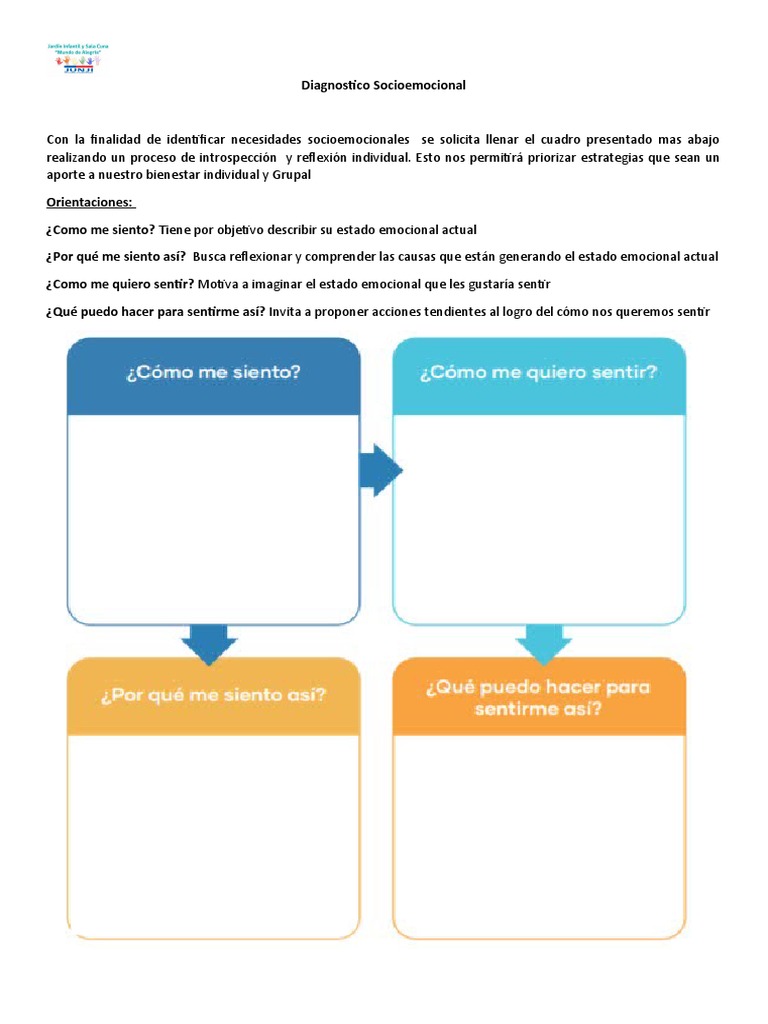 Con la finalidad de identificar necesidades socioemocionales se solicita llenar el cuadro presentado mas abajo