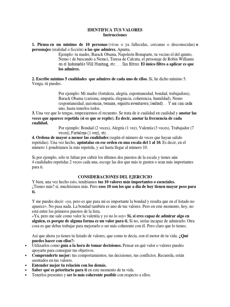 Y bien, una vez hecho esto, tendríamos tus 10 valores más importantes o esenciales.