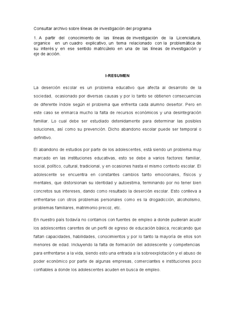 sociedad). Provocando que enfatice y me enfoque en el problema de la deserción