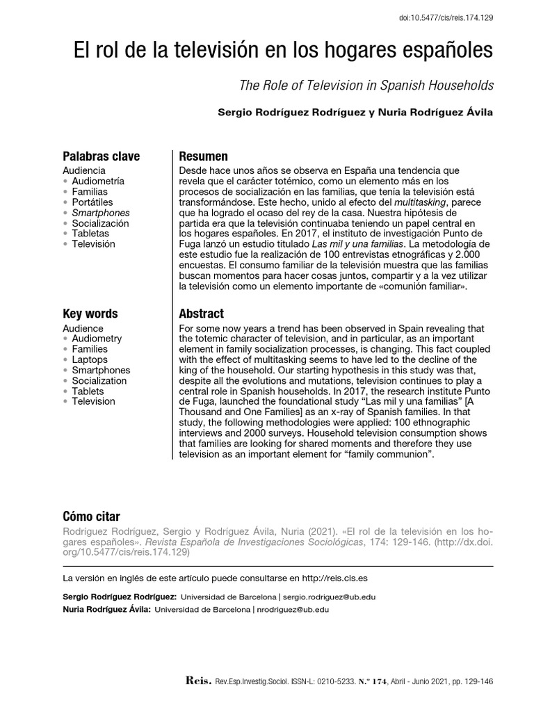 Rodríguez Rodríguez, Sergio y Rodríguez Ávila, Nuria (2021). «El rol de la televisión en los ho-