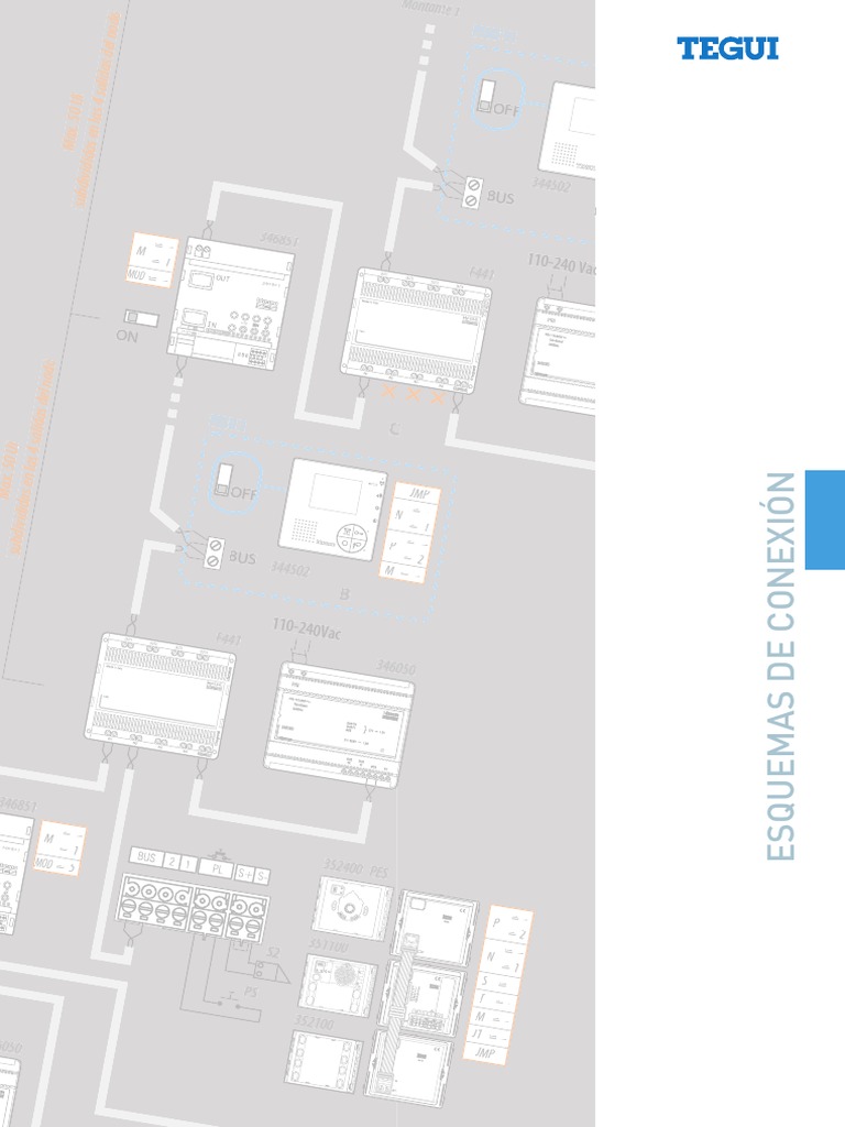 NOTA: en sistemas vídeo, el cableado se ha de efectuar en ENTRAR-SALIR en el borne BUS TK del alimentador 346050 o borne IN del nodo audio/vídeo.