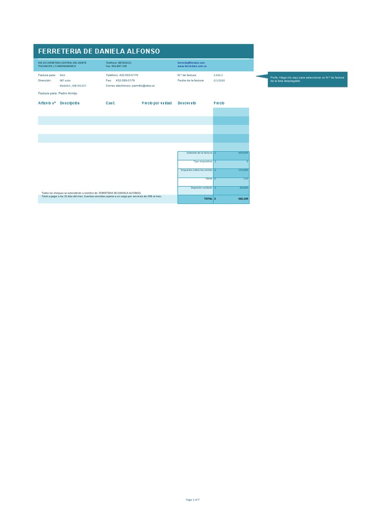 Porfe, Haga clic aquí para seleccionar un N.º de factura