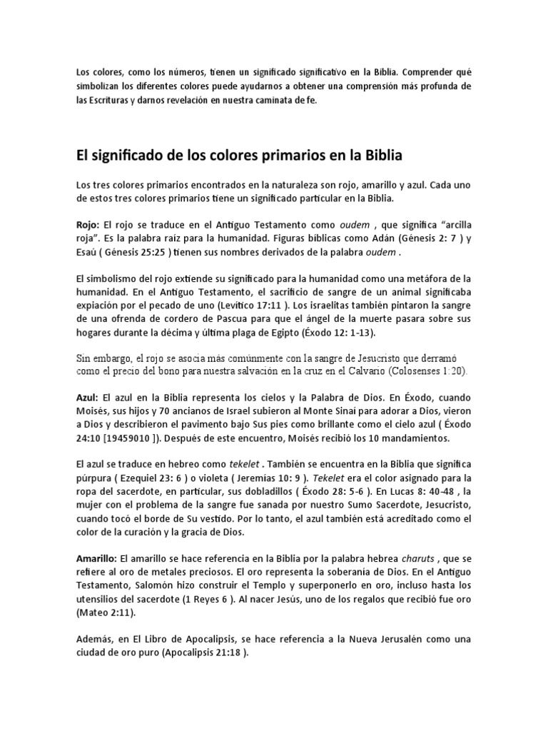 Los colores, como los números, tienen un significado significativo en la Biblia.