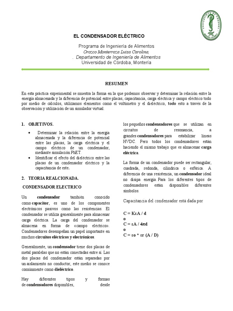1. OBJETIVOS. los pequeños condensadores que se utilizan en