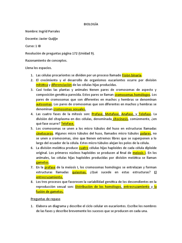 Resolución de preguntas página 172 (Unidad 9).