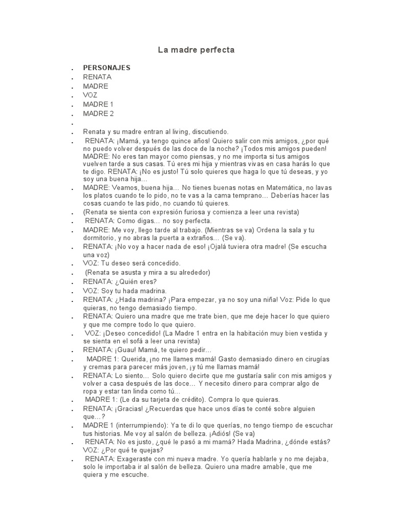 . MADRE 1 (interrumpiendo): Ya te di lo que querías, no tengo tiempo de escuchar