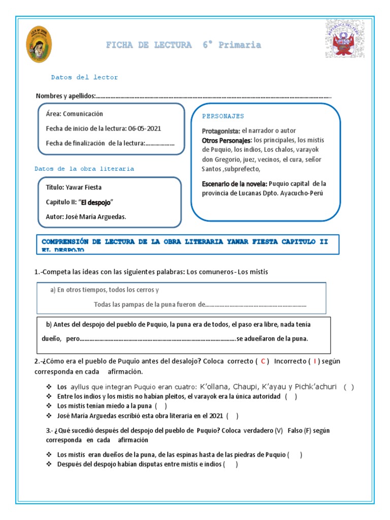 Fecha de finalización de la lectura:……………… : los principales, los mistis