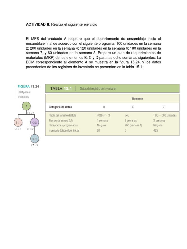 materiales (MRP) de los elementos B, C y D para las ocho semanas siguientes. La