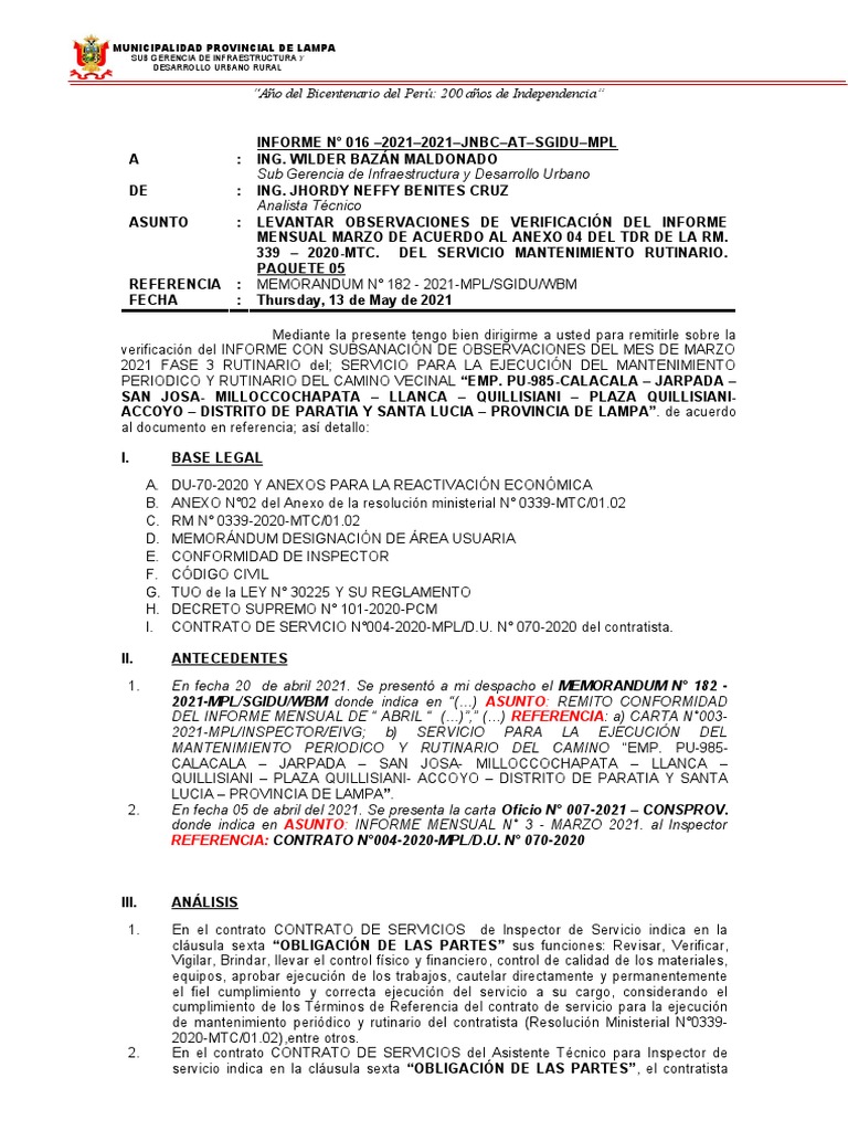 INFORME N° 016 –2021–2021–JNBC–AT–SGIDU–MPL