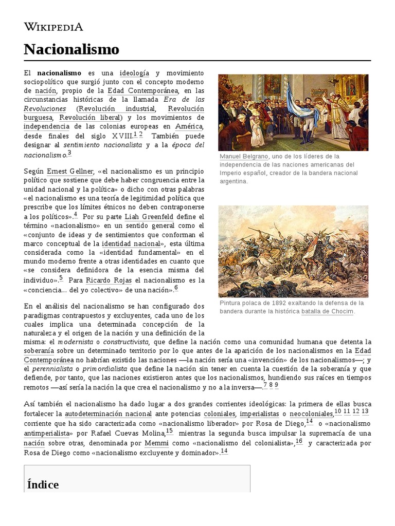 2. Smith, 2000, pp. 25-26. "El nacionalismo es una ideología y un movimiento moderno que
