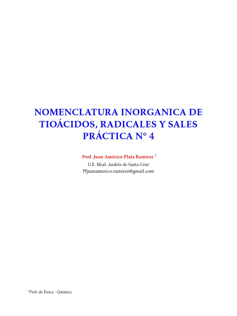 0.1. Resolver los siguientes problemas de nomenclatura y formulación . . . . . . . . . . . . . . 1