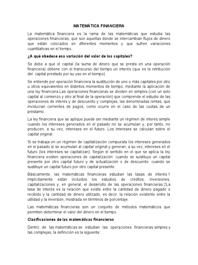 Dentro de las matemáticas se estudian las operaciones financieras simples y