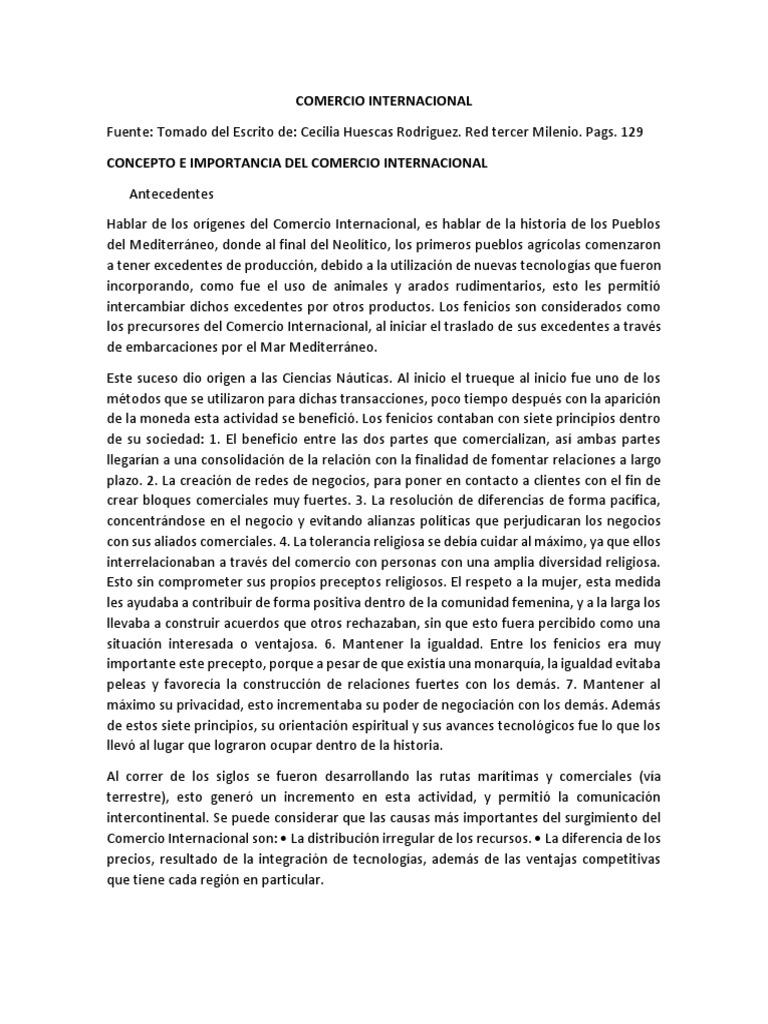 a éste. Importancia El comercio internacional es importante en la medida que contribuye a
