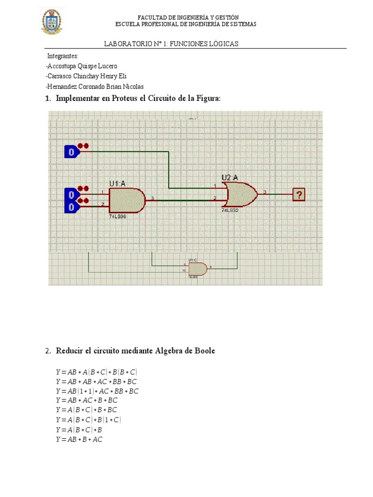 LABORATORIO N° 1: FUNCIONES LÓGICAS