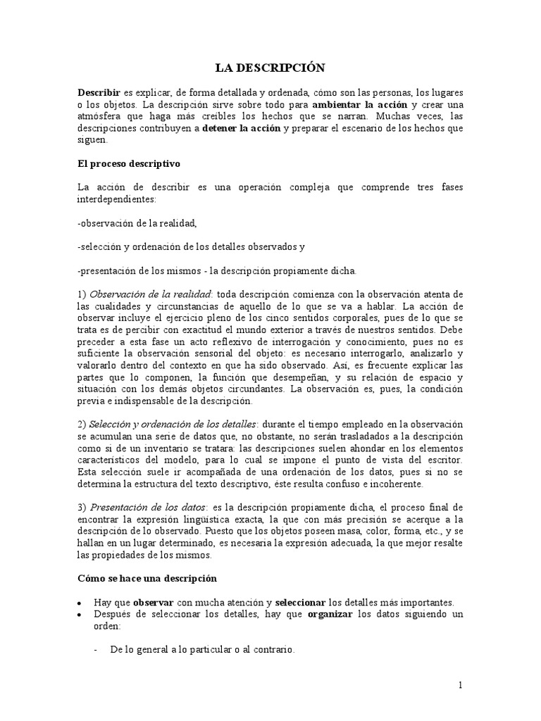 Cómo se hace una descripción
