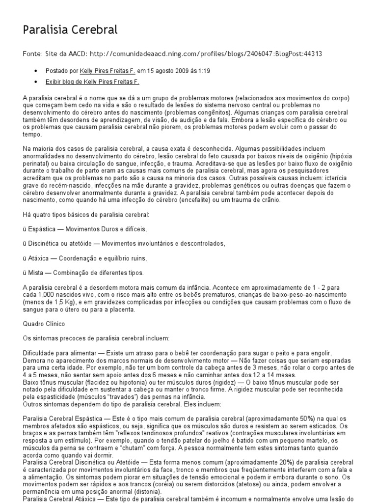 A paralisia cerebral é a desordem motora mais comum da infância. Acontece em aproximadamente de 1 - 2 para